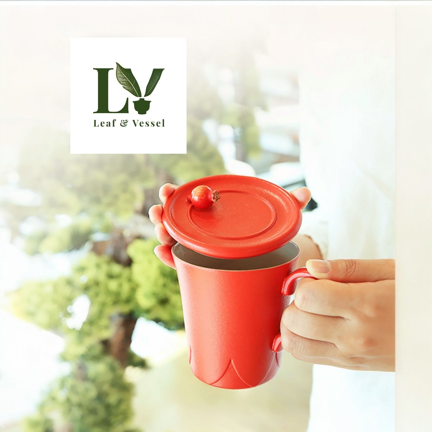 Blooming Pomegranate includes a crimson pomegranate charm enables the multi- functional lid to hang flawlessly from the rim of the cup, which has a bottom carved out of a blooming pomegranate flower.